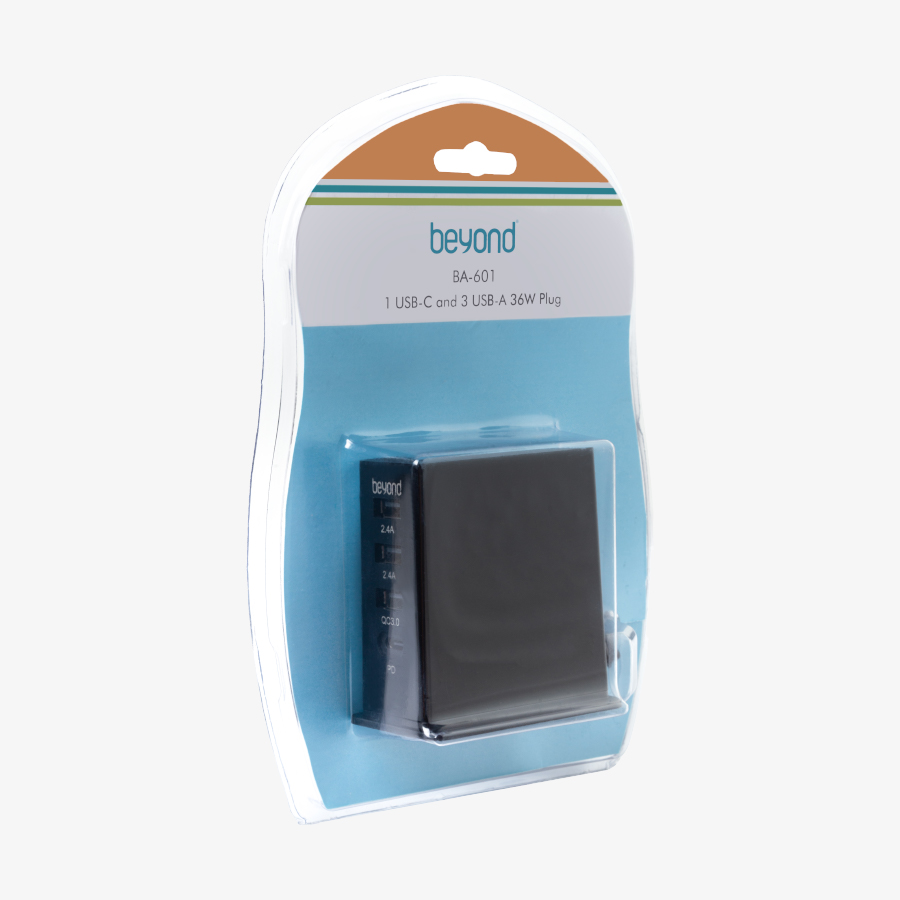 با آداپتور شارژر بیاند BA-601 به کمک 3 خروجی USB و یک خروجی USB-C آن میتوانید 4 دستگاه جداگانه را به صورت همزمان با سرعت 36 وات شارژ کنید.