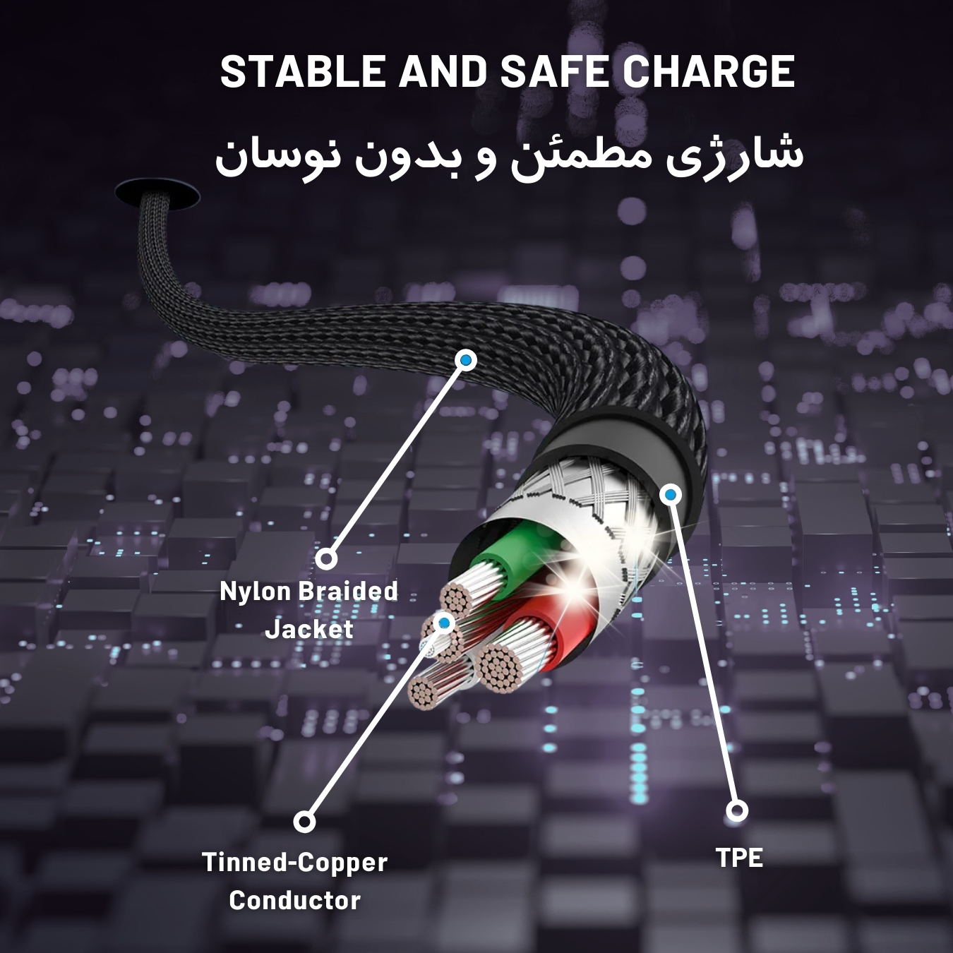 جنس هسته این کابل از مس است و وجود 4 مجموعه سیم مسی در این کابل باعث می‌شود که علاوه بر شارژ سریع دستگاه با جریان 2.4A، قابلیت انتقال اطلاعات به کمک آن را نیز داشته باشید.