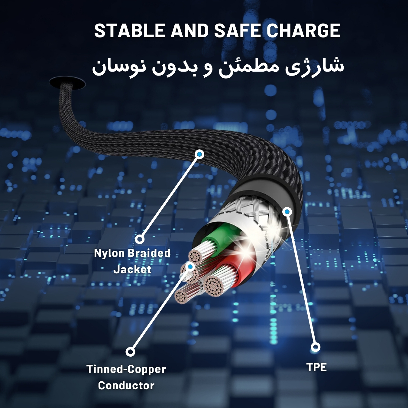 روکش TPE محافظ سیمها و استفاده از سیمهای OFC باعث میشود تا کمترین میزان افت ولتاژ در طول کابل به وجود آید و دستگاههای iOS شما با کمترین میزان نوسان ولتاژ ممکن شارژ شوند.