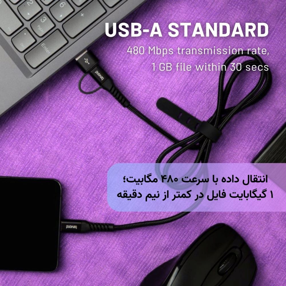 کابل بیاند BCUL-551 یک کابل لایتنینگ و مخصوص دستگاه‌های Apple است که در سر دیگر آن تایپ سی است، اما یک تبدیل به USB عادی را نیز دارد تا شما بتوانید بسته به نیاز خود جهت اتصال دستگاه‌های Lightning خود به تجهیزات مختلف، از پورت اتصال مناسب استفاده کنید.