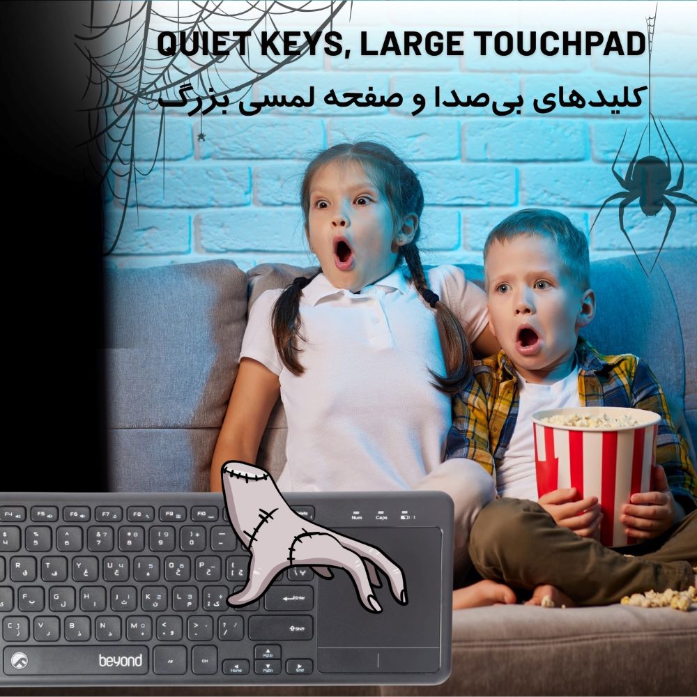 با دکمههای سایلنت کیبورد BK-6802 و تاچ پد بزرگ آن میتواید کنترل هر دستگاهی را بدون کوچکترین صدا و مزاحمت برای افراد اطراف خود به دست بگیرید.
