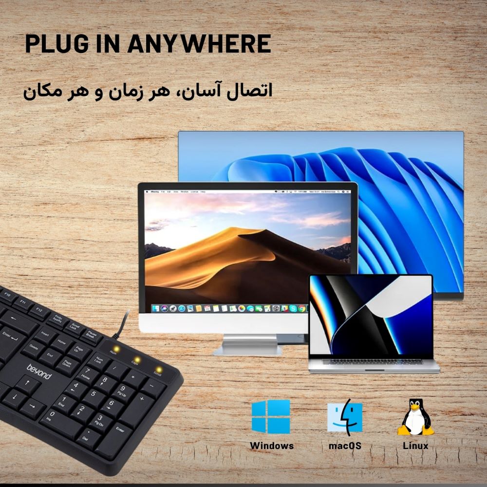 کیبورد بیاند BK-3870 از طریق کابل و پورت USB به سیستم مورد نظر شما وصل می‌شود و بدون نیاز به نصب نرم افزار می‌توانید از این محصول استفاده کنید.
