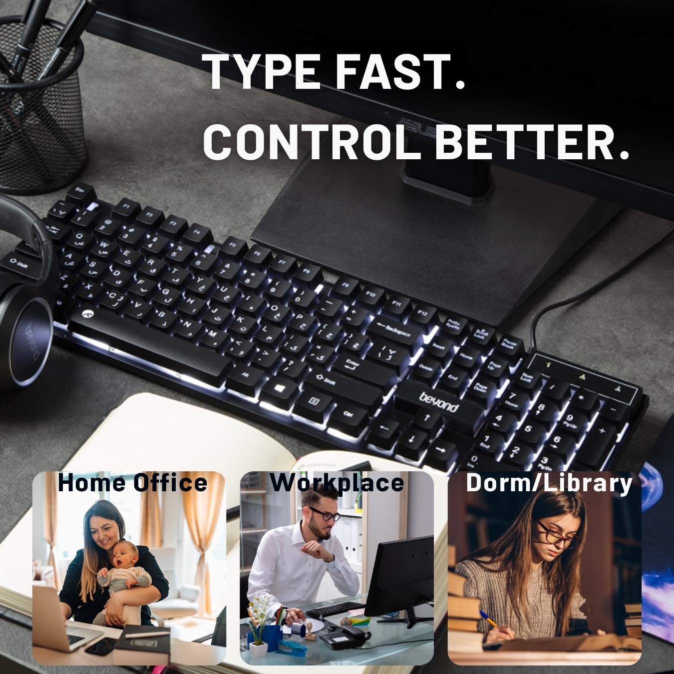 کیبورد گیمینگ بیاند BK-7110 یک کیبورد همهکاره است که میتوانید با آن بازی کنید، کارهای روزانه خود را با سرعت و دقت بالا انجام دهید و به کمک بکلایت سفید رنگ آن در محیطهای تاریک نیز بدون مشکل با آن کار کنید.