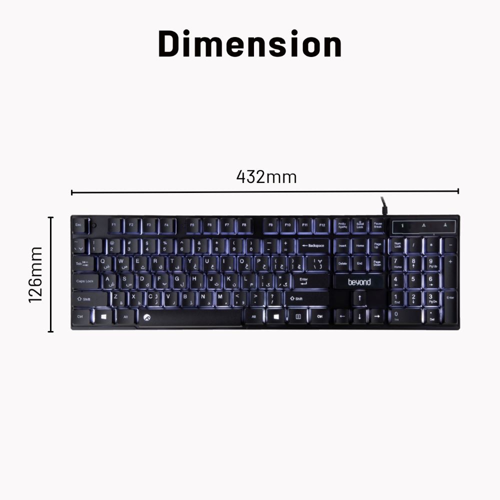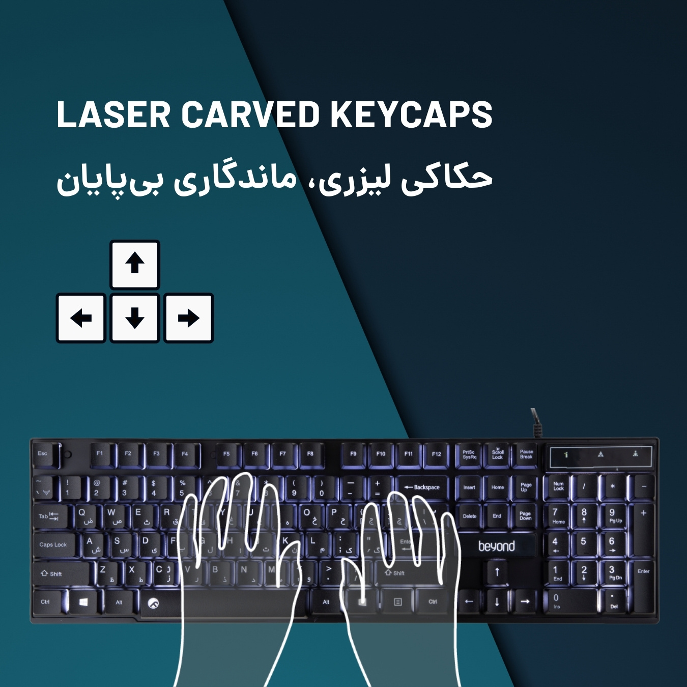 کلیدهای کیبورد بیاند BK-7110 دارای حروف فارسی هستند و چاپ با کیفیت بالای این حروف حک شده باعث ماندگاری بالای آنها شده است.