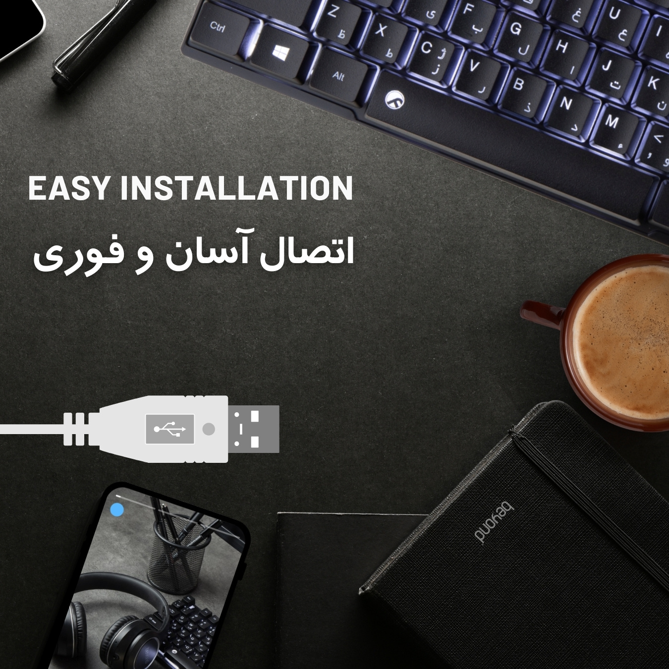 اتصال کیبورد با استفاده از رابط USB و به صورت Plug & Play و بدون نیاز به نصب درایور و نرمافزار برقرار میشود.
