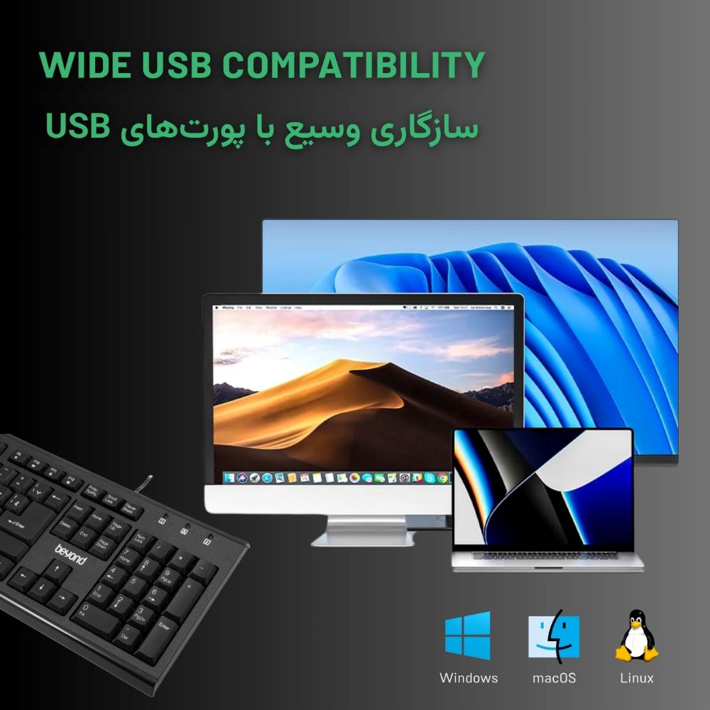کیبورد بیاند BK-8305 با تمام نسخههای رایج سیستمعامل ویندوز، MacOS، لینوکس، اندروید و آی او اس سازگاری دارد.
