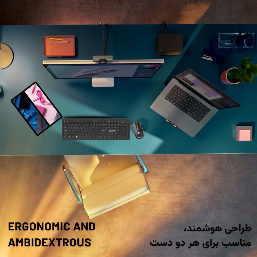 ماوس ست کمبو بیاند BMK-2890 RF دارای طراحی Ambidextrous است که باعث میشود توسط افراد راست و دست و چپ دست قابل استفاده باشد.